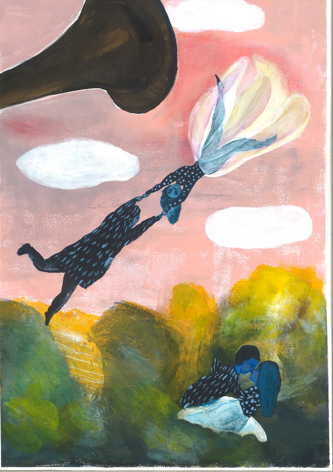 Ho iniziato a dipingere con della musica jazz di sottofondo e ne è uscita fuori questa storia d'amore.
